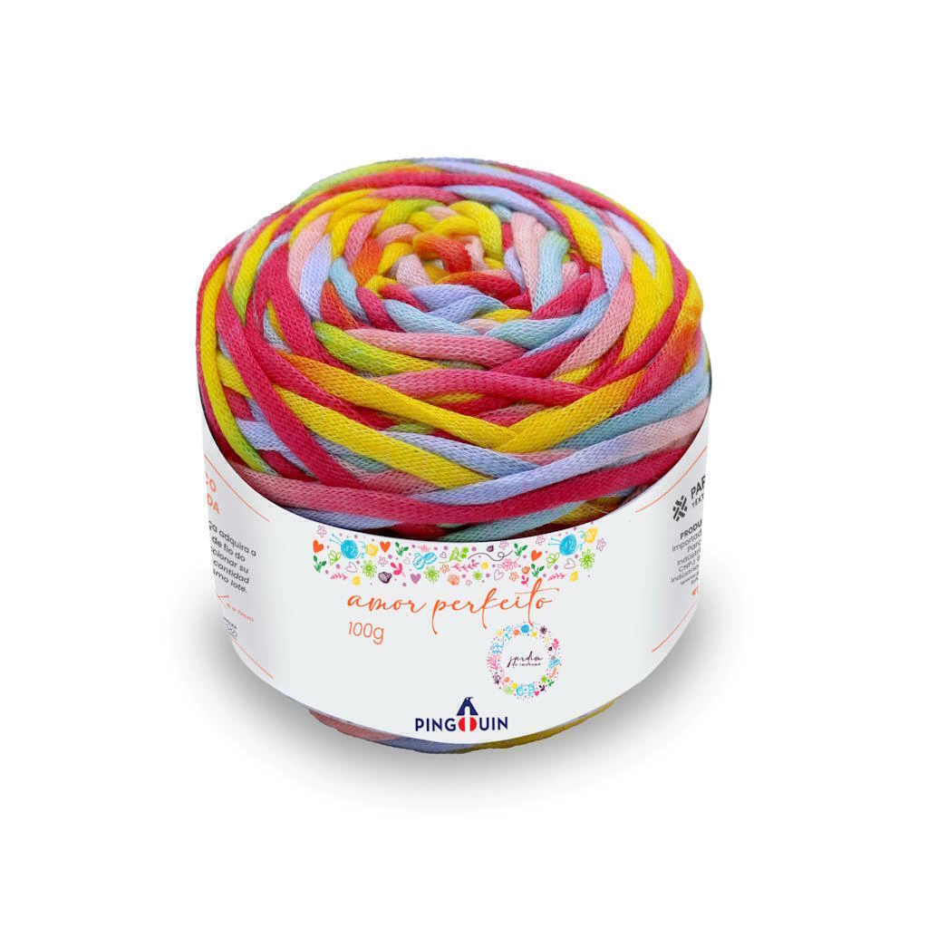 O Amor-Perfeito se destaca pela sua construção diferenciada, que lembra um tubo ou fita, oferecendo uma textura única. Seu tingimento especial cria um padrão de cores vibrantes e harmônicas, fazendo de cada peça uma obra de arte.